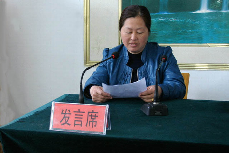 图为:今年三八节上张莉代表受表彰好媳妇发言