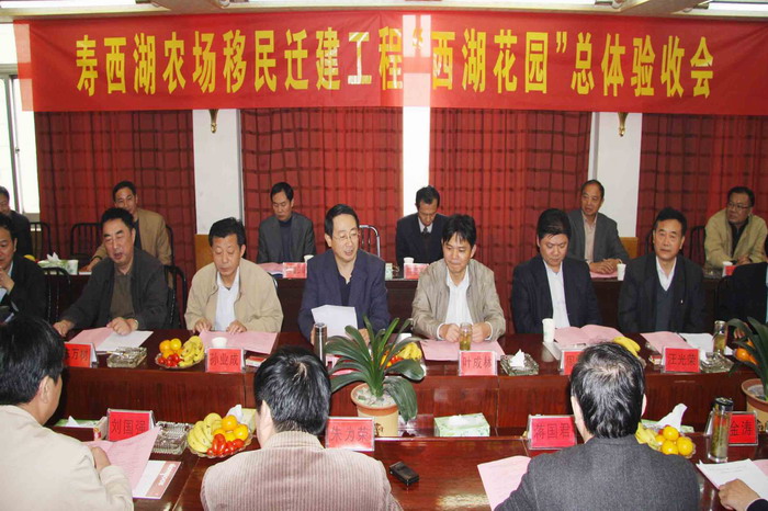 专家验收组及与会领导、代表首先查看了“西湖花园”住宅小区、老房拆迁点现场及各类档案资料,走访了部分迁移户。在随后召开的验收总结会上,寿西湖农场场长朱为荣致欢迎辞,副场长蒋国君作了移民迁建工作总结汇报。随后,专家验收组成员观看了项目实施专题片,听取了工程勘察、设计、施工、监理、质检等单位和职工代表的发言,专家们对工程逐一作了综合评价,均表示同意该工程通过总体验收。