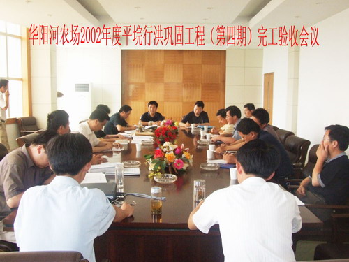 2007年5月30日,华阳河农场2002年度(第四期)平垸行洪巩固工程通过完工验收。验收委员会由项目主管部门集团公司农水处、华阳河农场平垸行洪巩固工程建管处、安徽省现代农业设计研究院、安庆市水利工程质量监督站、安庆市宜兴水利水电工程监理部、施工单位、现场管理机构和运行管理等单位的领导和代表19名组成。