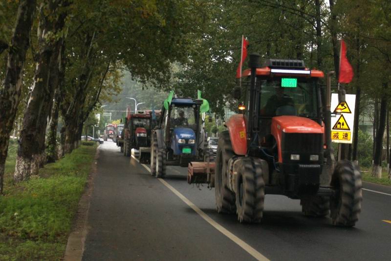 1015,安徽龙亢农场35台大马力拖拉机浩浩荡荡开进五河县省级大新现代生态农业产业化示范区,开辟现代农服发展新天地。开拔前,在农业八分场举行了简短动员会,龙亢农服公司管理人员及农机手参加。