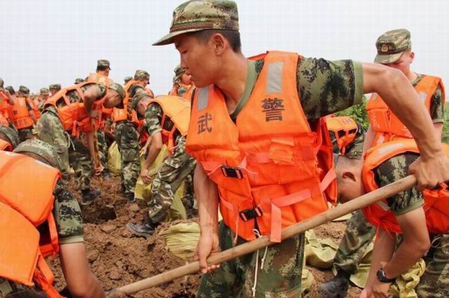 华阳河农场抗洪一线 武警官兵来了!
