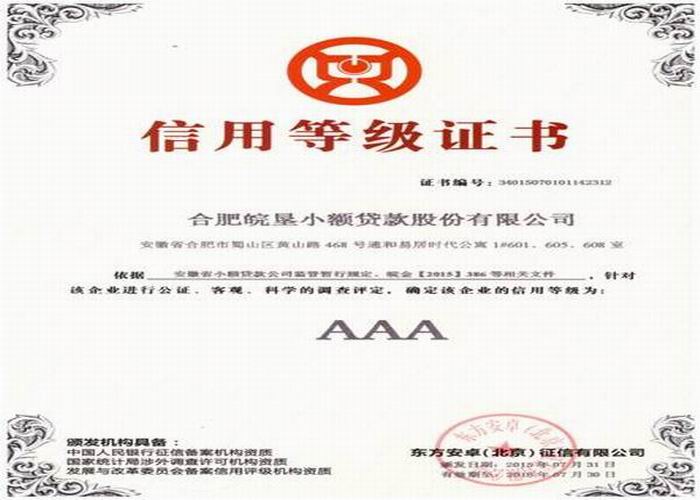 新年伊始,皖垦小贷股份公司荣登省市光荣榜。安徽省小额贷款公司2015年度信用评级近日揭晓,皖垦小贷再度获评最高“AAA”等级,同时喜获合肥市“年度小额贷款业务支持地方经济发展二等奖”。
